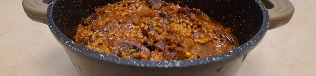 | 1 ק"ג בשר בקר המתאים לבישול ארוך (צלעות או כתף) חתוך לקוביות גדולות |